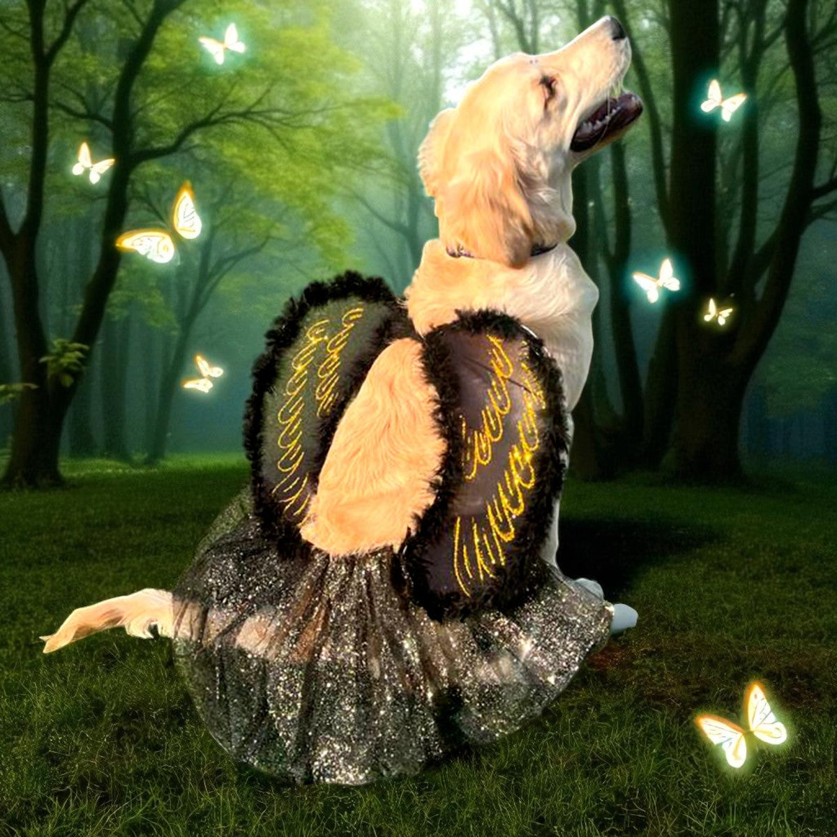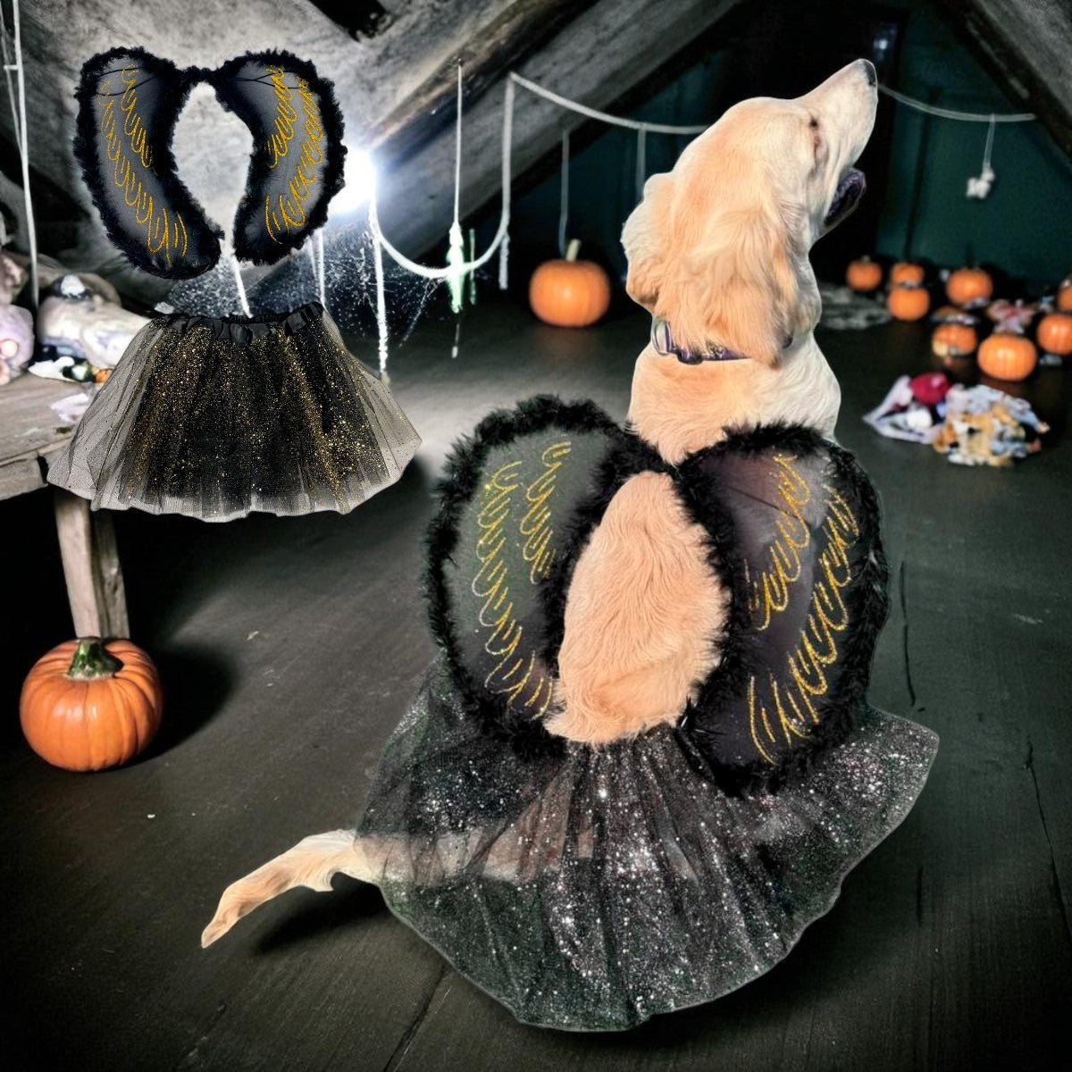 Hermoso y divertido disfraz de ángel negro, ideal para que tu perrita sea toda una villana de las tinieblas, será la sensación de noche de brujas con su hermoso tutú y alas.